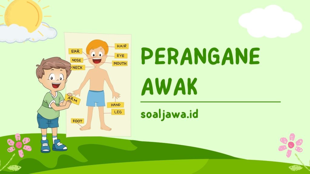 Gunone perangane awak yoiku sirah gae enggon utek miker karo ngendhalekake awak, mripat gae masi, kupeng gae ngrungokno karo njogo keserasian, irung gae ambegan karo ngambu, cangkem gae mangan karo omong, ilat gae ngrasakake roso, untu gae mamah panganan, tangan gae nyekel karo nggowo barang, sikil gae melaku karo mlayu, jantung gae mompa getih, paru-paru gae ambegan, lambung gae nyerna panganan, ati gae ngolah gizi karo mbuak racon, ginjel gae nyareng getih, kulit gae ngelindungi awak karo ngatur temperatur, karo balung gae nyonggo awak.